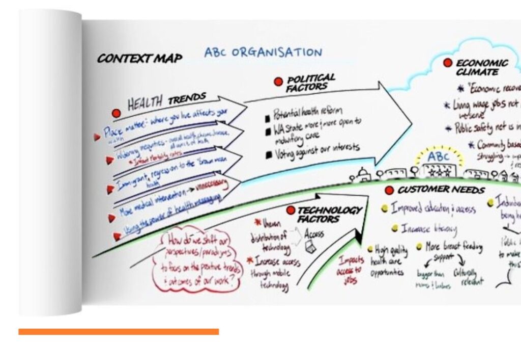 Dzięki wykorzystaniu grafiki, rezultaty pracy są łatwo zapamiętywane i wykorzystywane. Po warsztacie ludzie nadal noszą w głowie obrazy (myślą o nich, rozmawiają o nich) i dzięki temu rośnie szansa na skuteczniejsze wdrożenie.